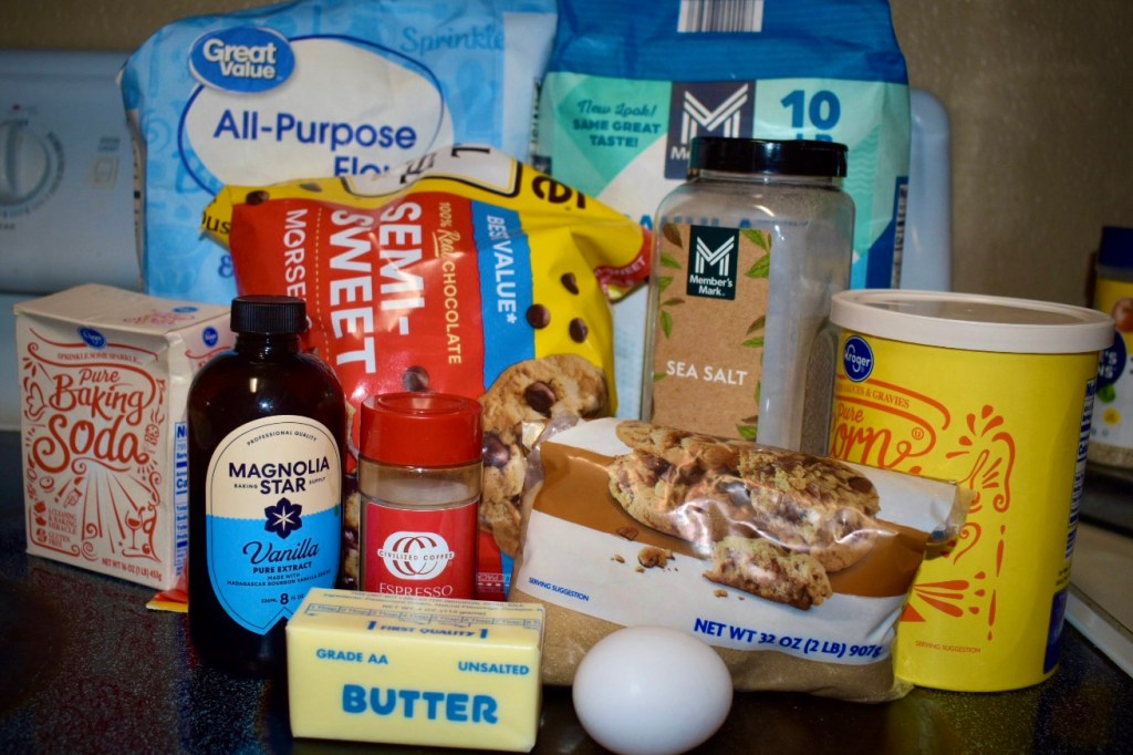 - Dry mix: In another bowl, whisk together 1 ½ cups flour, 1 tsp baking soda, 1 tsp cornstarch, 1 tsp salt, and ½–1 tsp espresso powder.