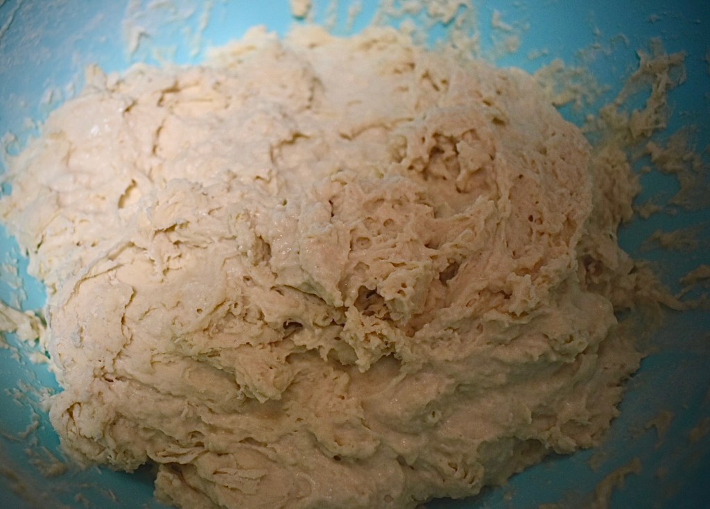 Cover the bowl and let the dough rise in a warm spot for about 4 hours, or until it has roughly doubled and feels light and airy.