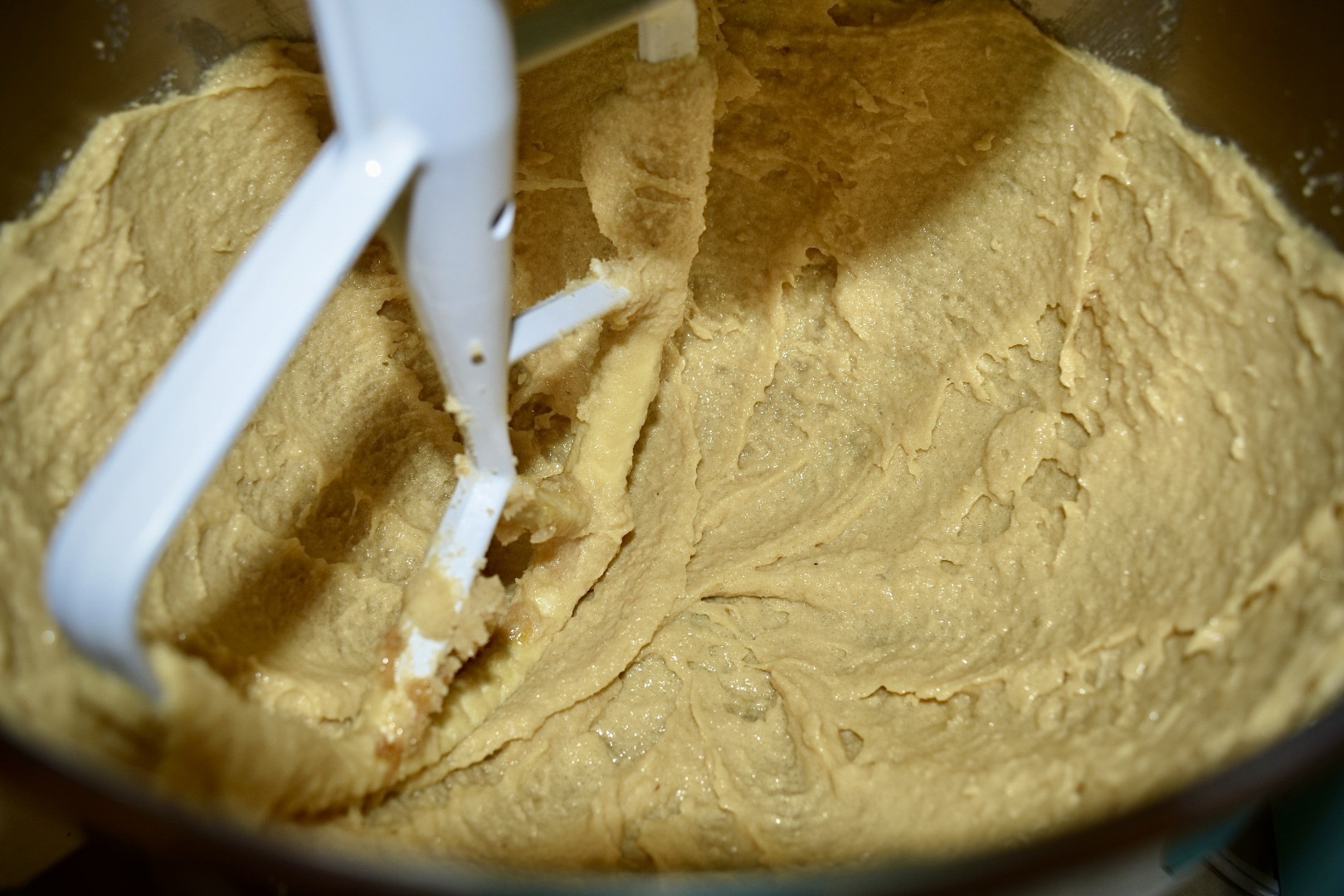 Add 1 egg, 1 egg yolk, 1 tsp vanilla paste, and ½ tsp vanilla extract. Mix until combined and creamy.